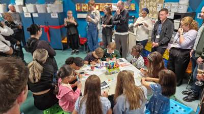The space was officially opened last week at a joyful community event attended by pupils, parents, governors, teaching staff and a number of established artists. Guests joined the pupils to cut the ribbon and see the room in action. Attending artists included Dianne Minnicucci, Kay Konecna, Nathan Marsh and Dreph — representing jewellery design, audio & musical work and mural practice — all of whom were delighted to see a school investing in their art provision.